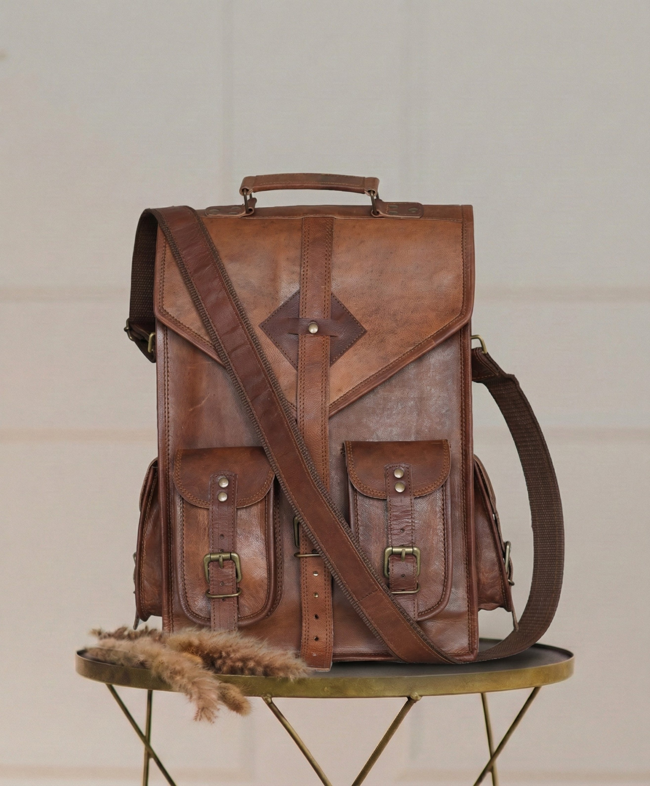 Built for comfort and durability, the backpack features spacious compartments and thoughtful pockets to keep your essentials organized. The aged brass hardware adds to its rustic character, while the adjustable straps provide ease and support for every journey.