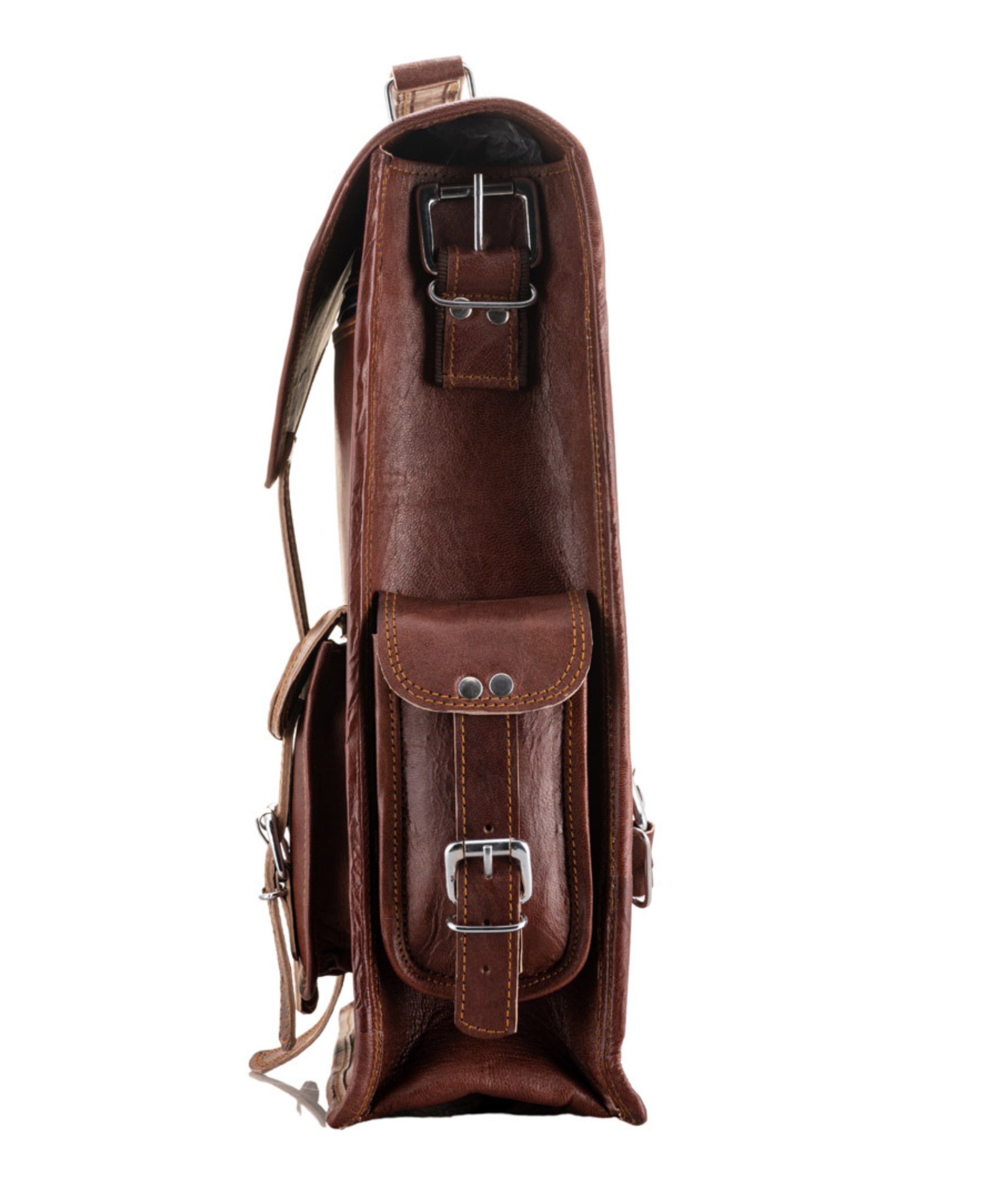 Designed with multiple compartments and durable brass hardware, it holds everything you need whether you're heading to work, traveling, or hitting the city streets. A sturdy top handle and adjustable shoulder straps ensure comfortable carrying, while the classic flap design and buckle details add character to your style.