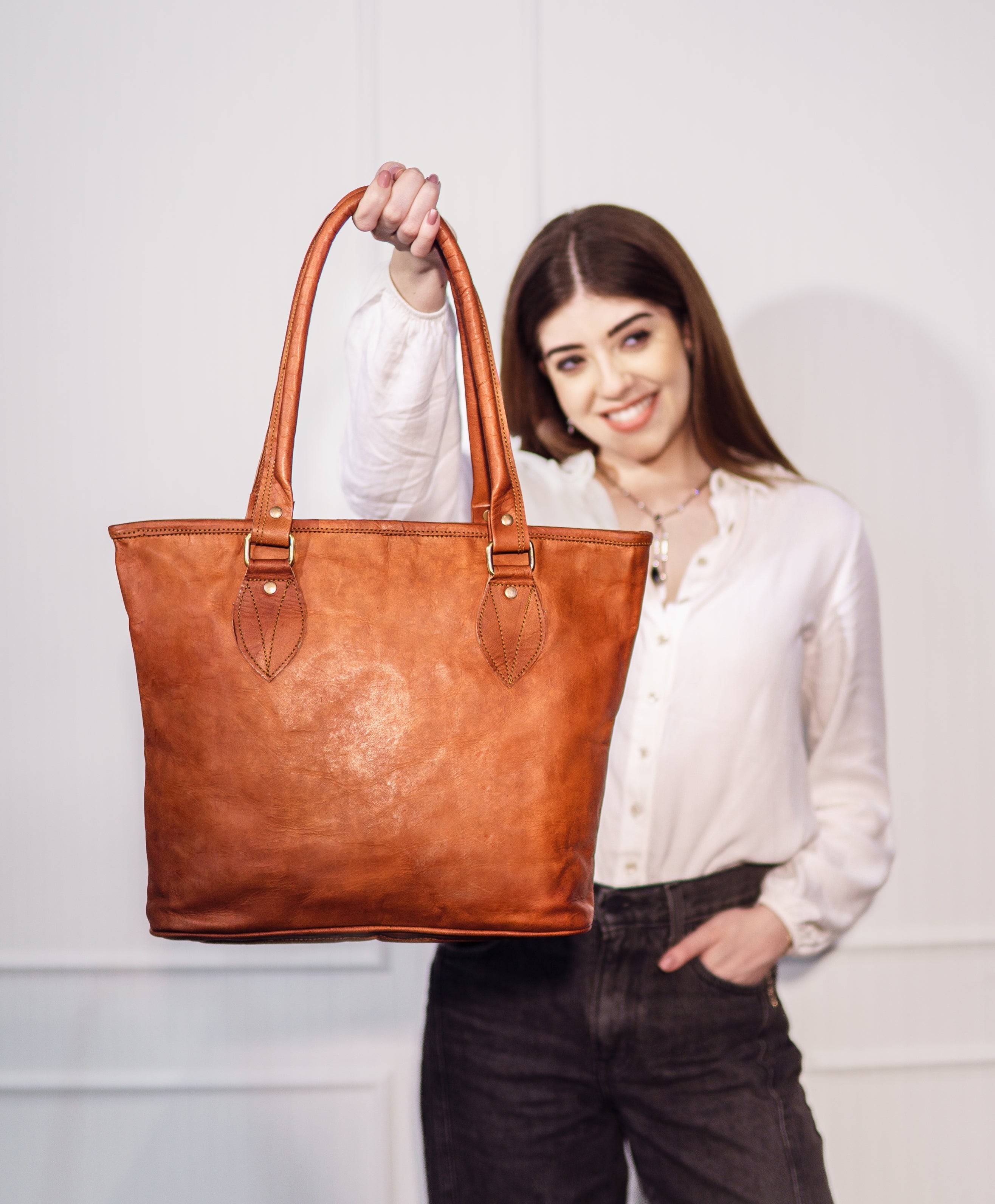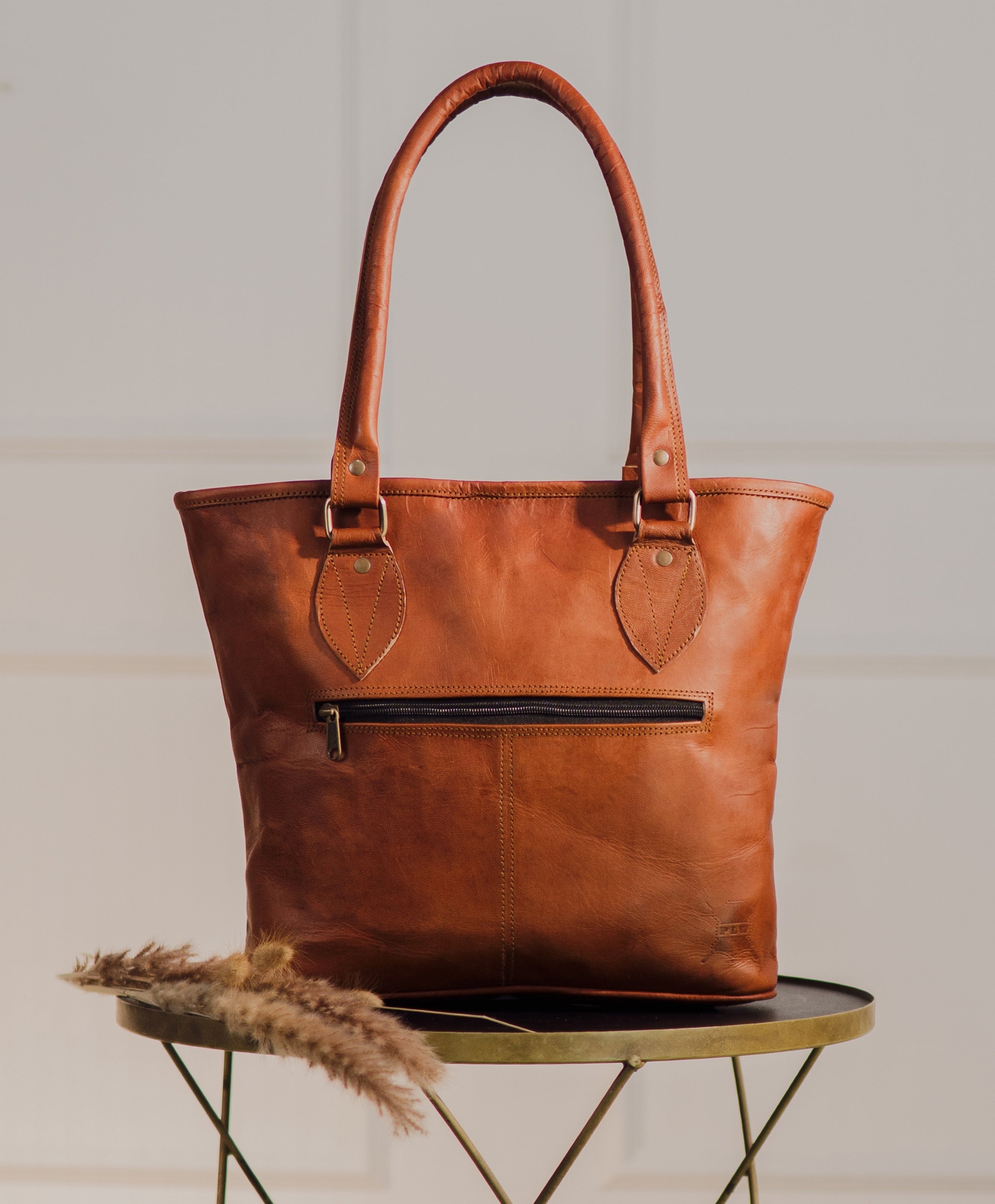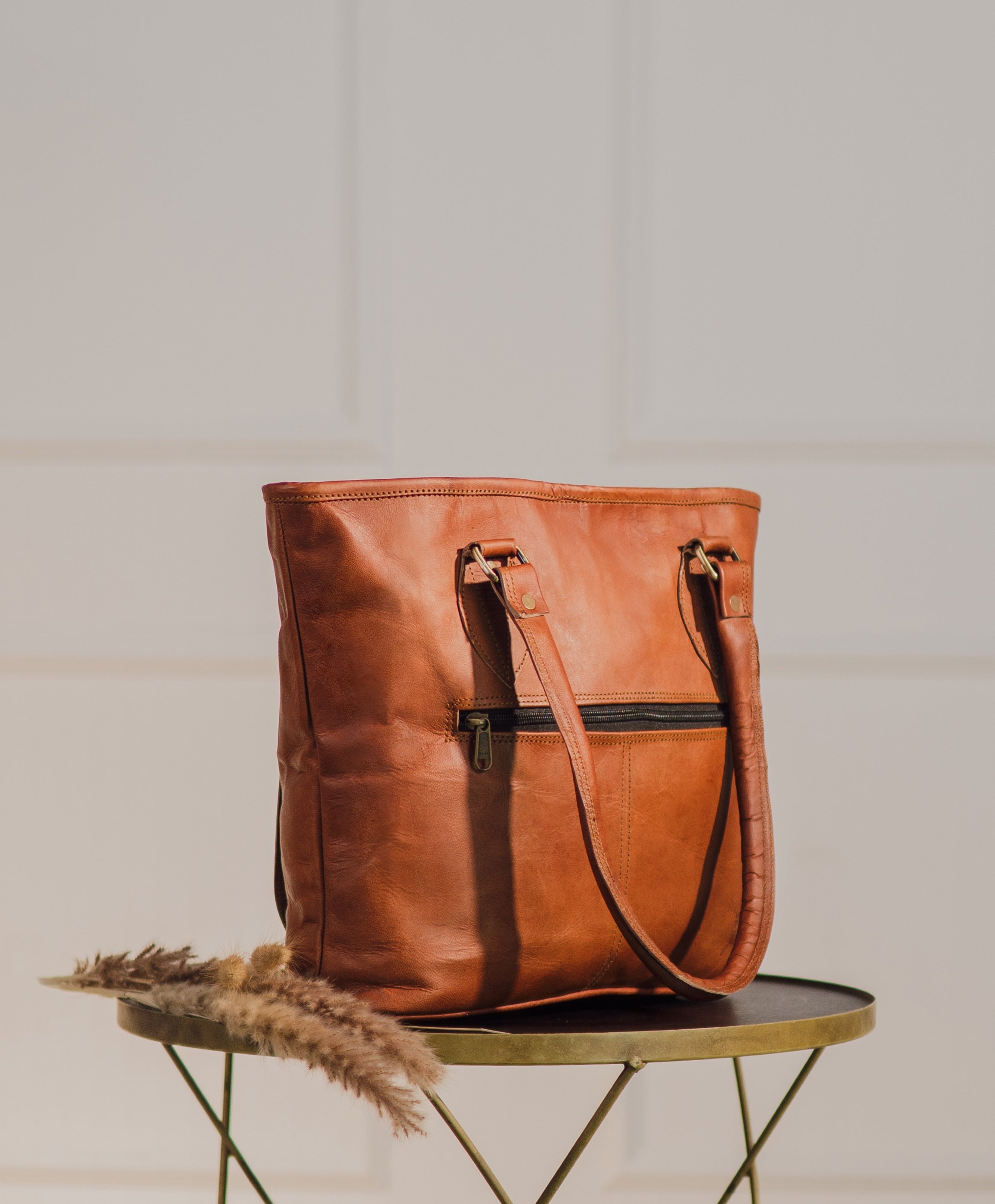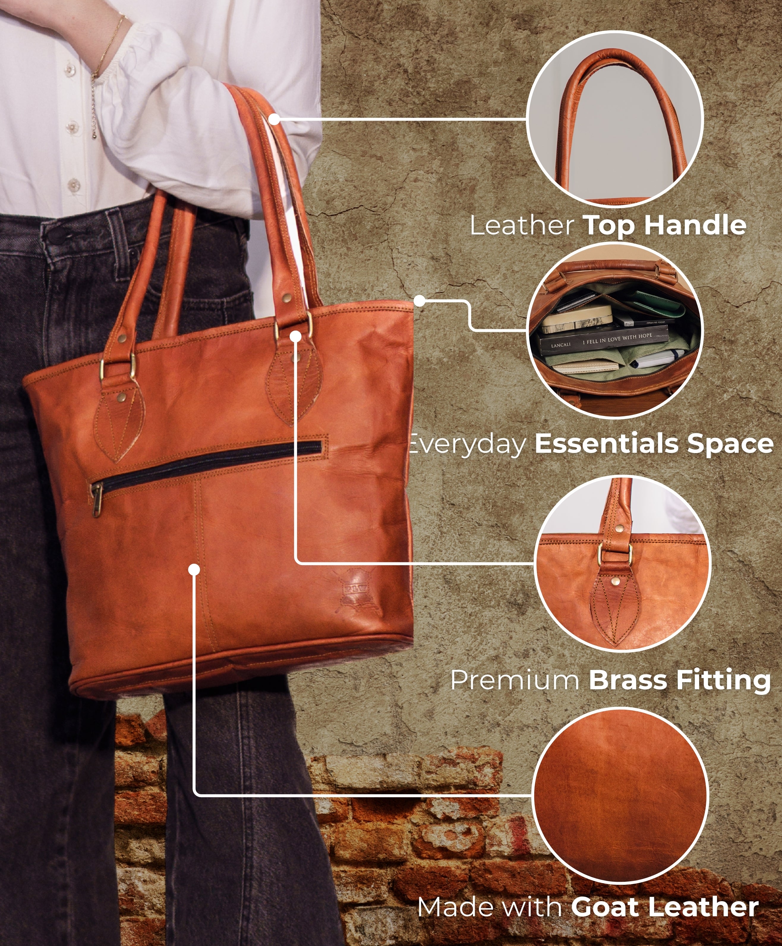 The Earthy Brown Leather Tote is where timeless design meets everyday ease. Crafted from full grain goat leather, its rich earthy brown tone and natural grain offer a grounded, effortless elegance. Whether you're heading to work, strolling through the market, or stepping out for a casual evening, this tote carries your essentials with style and simplicity.
