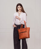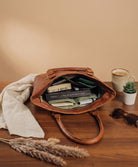 Clean lines, sturdy double handles, and antique brass details give it a minimalist charm, while a secure zipper closure and practical compartments ensure all day functionality. Built to age beautifully, this is a wardrobe staple that grows more distinctive with time.
