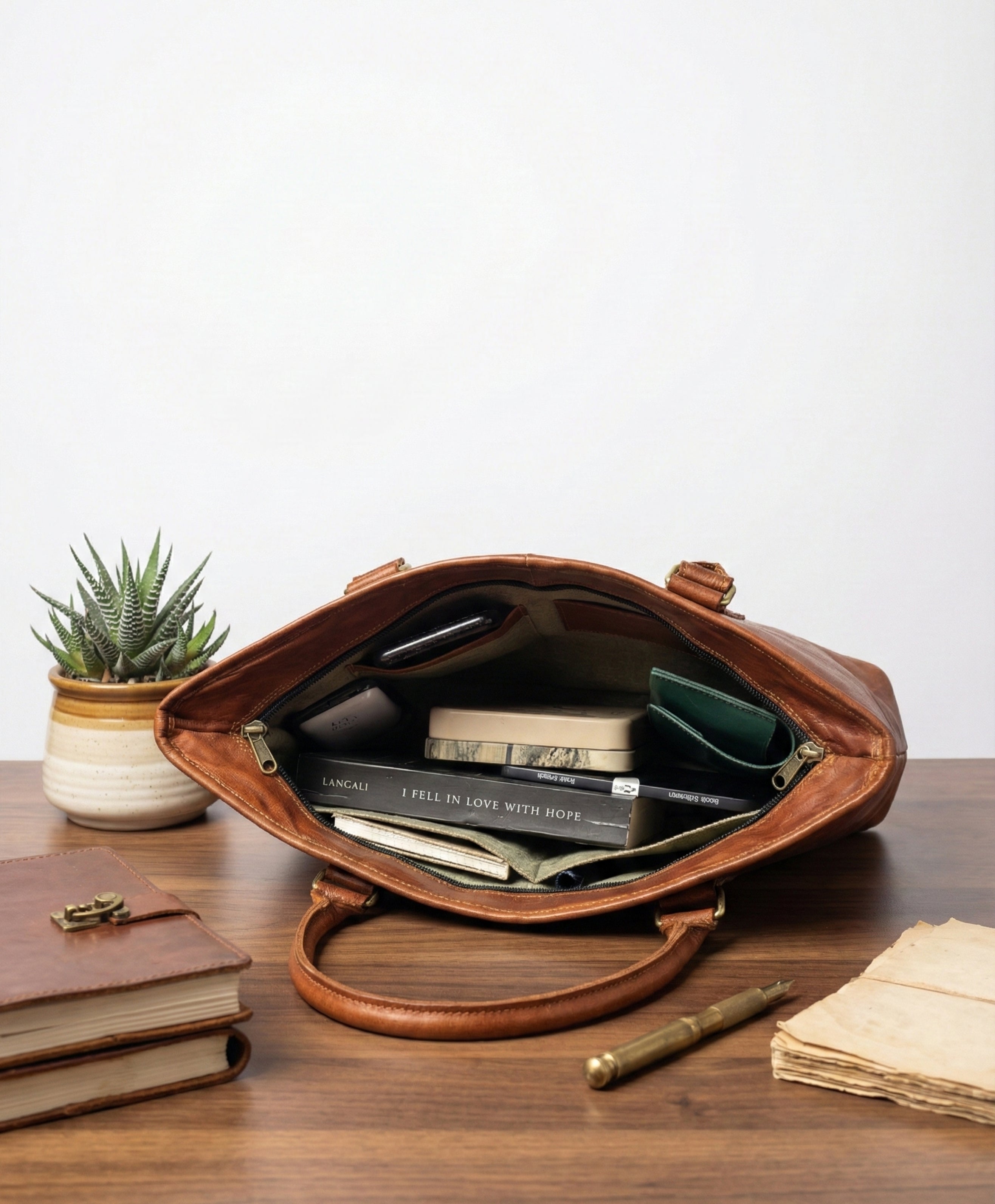 Blending timeless elegance with everyday function, the Classic Brown Leather Tote is a standout piece for those who value refined craftsmanship and natural beauty. Handcrafted from full grain goat leather, its rich classic brown hue radiates warmth and character, making it a versatile essential for workdays, errands, or weekend escapes.