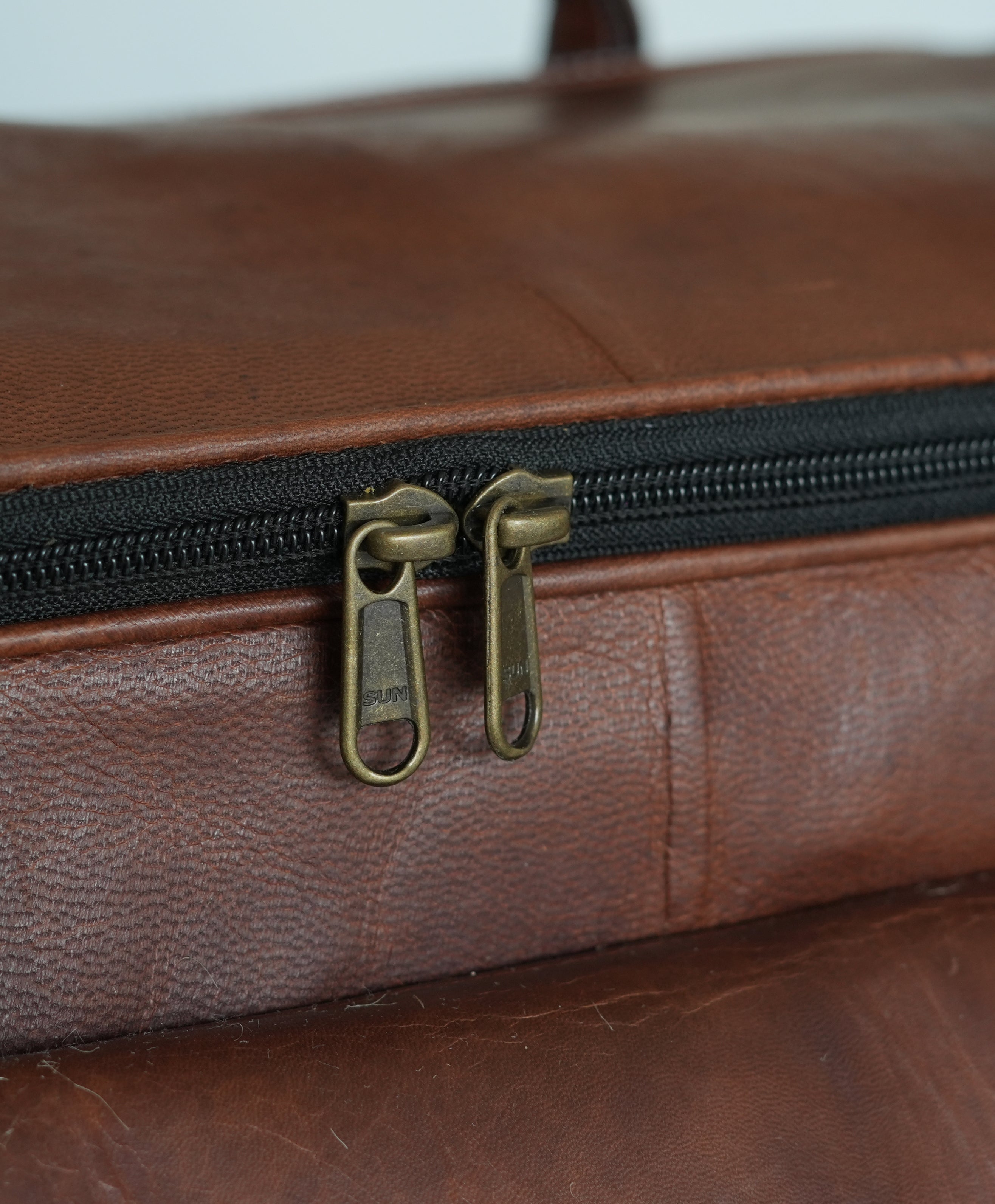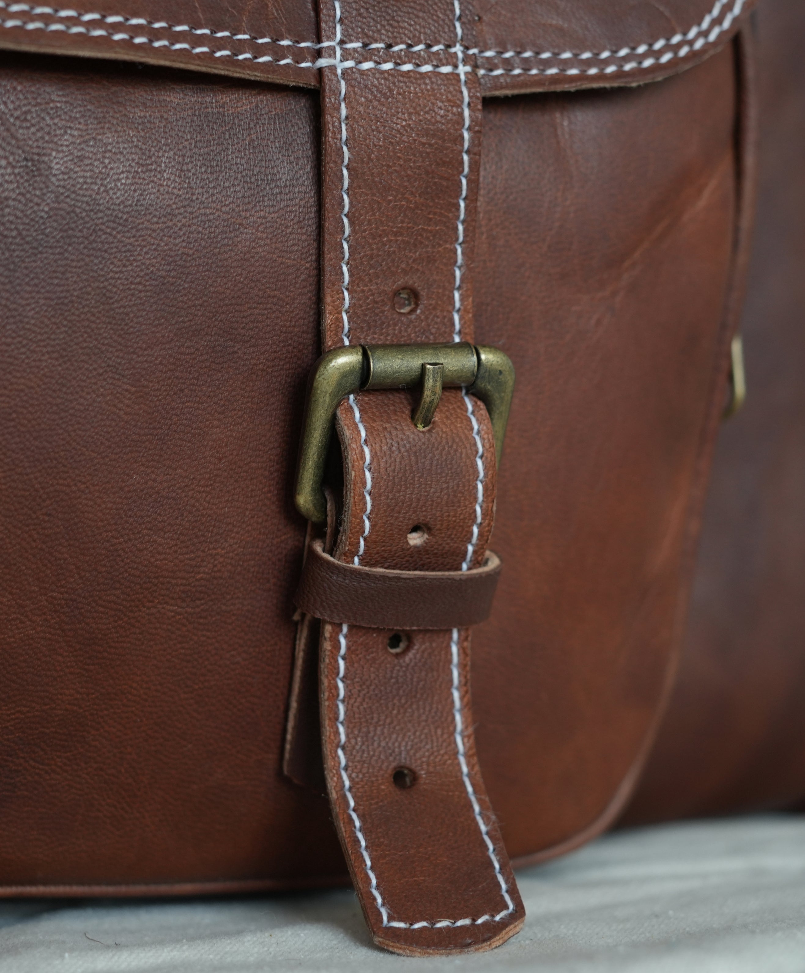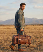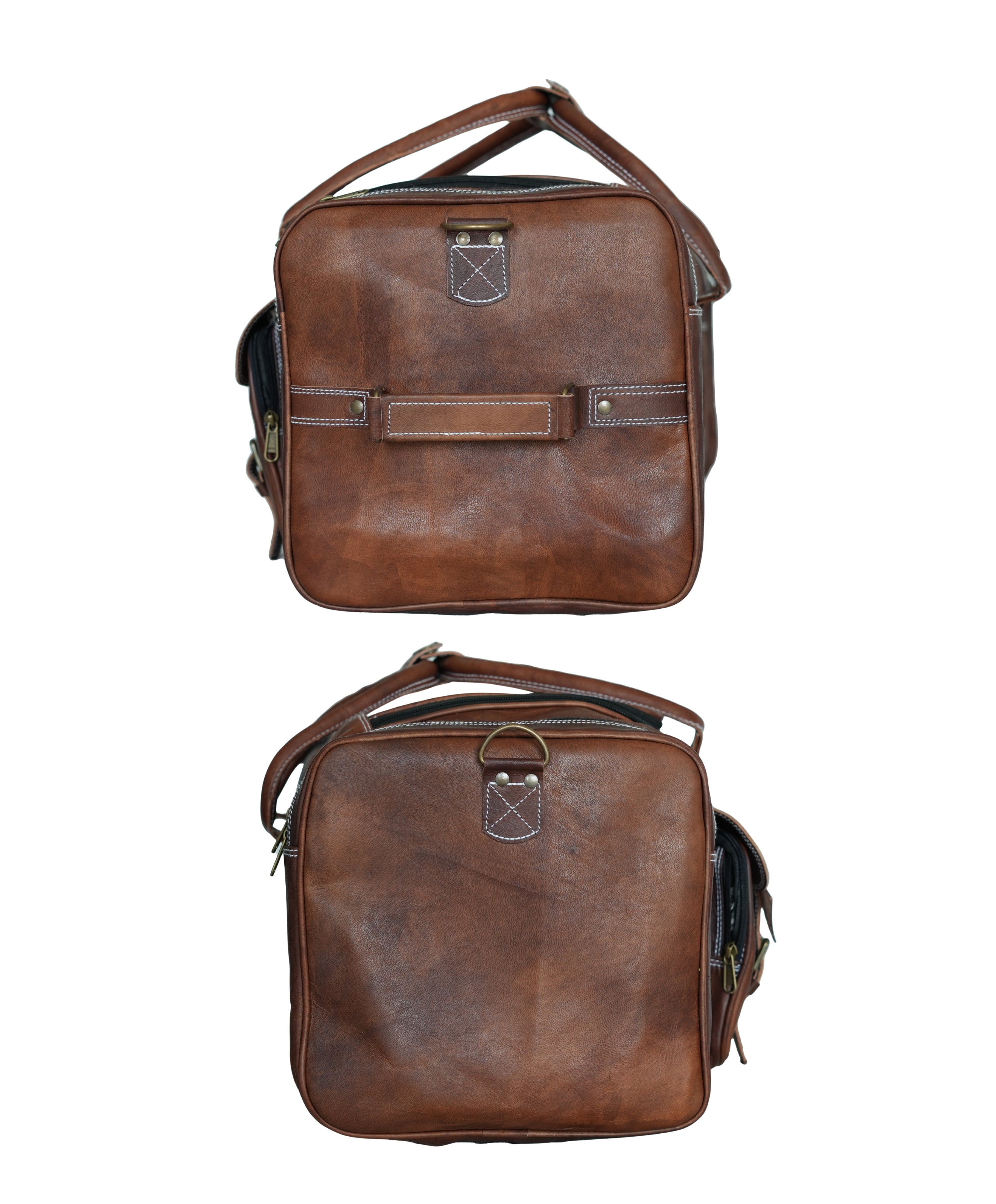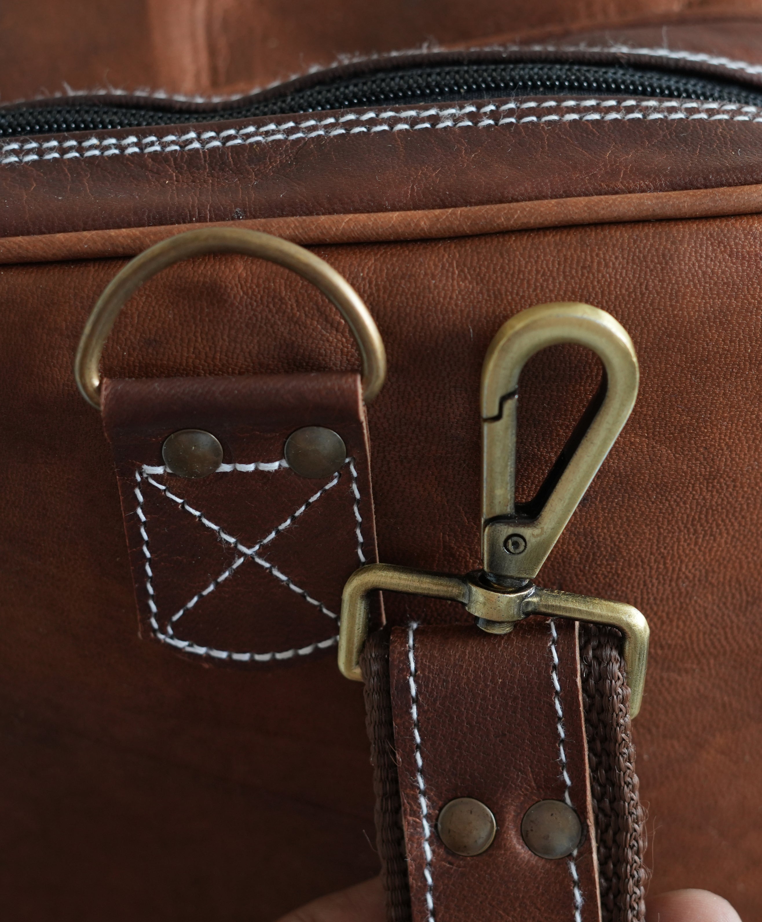 Embark on your next adventure with the Traveler's Brown duffle leather bag. Crafted from genuine full-grain leather, this duffle bag boasts a rich brown finish, beautifully accented by striking white contrast stitching that highlights its robust construction and classic design. Perfect for weekend getaways, business trips, or daily adventures, its timeless appeal and ample storage ensure you're always prepared with style.