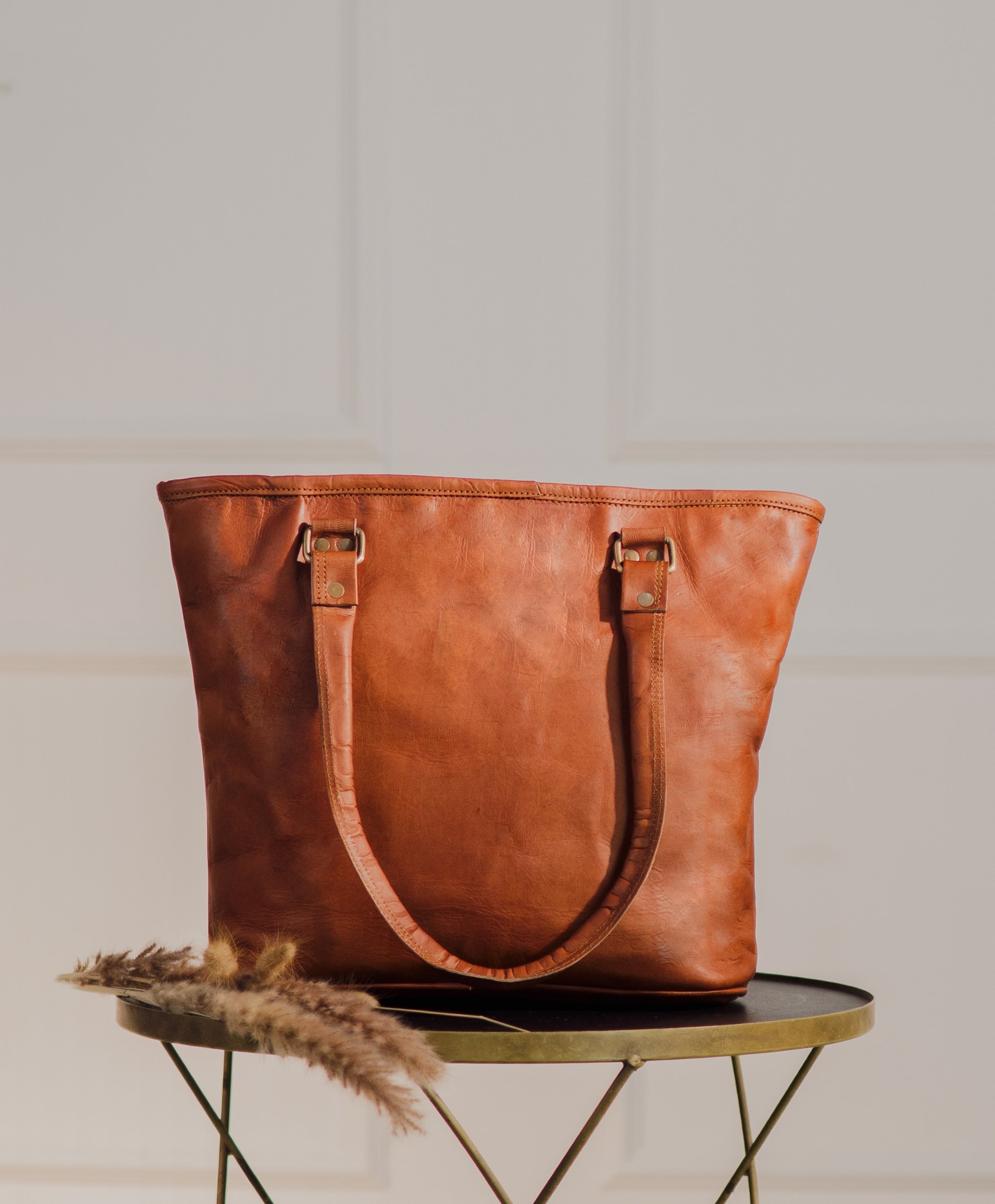 Blending timeless elegance with everyday function, the Vintage Brown Leather Tote is a standout piece for those who value refined craftsmanship and natural beauty. Handcrafted from full-grain goat leather, its rich vintage maroon hue radiates warmth and character, making it a versatile essential for workdays, errands, or weekend escapes.