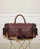 Vintage Brown Leather Weekender Duffel Bag