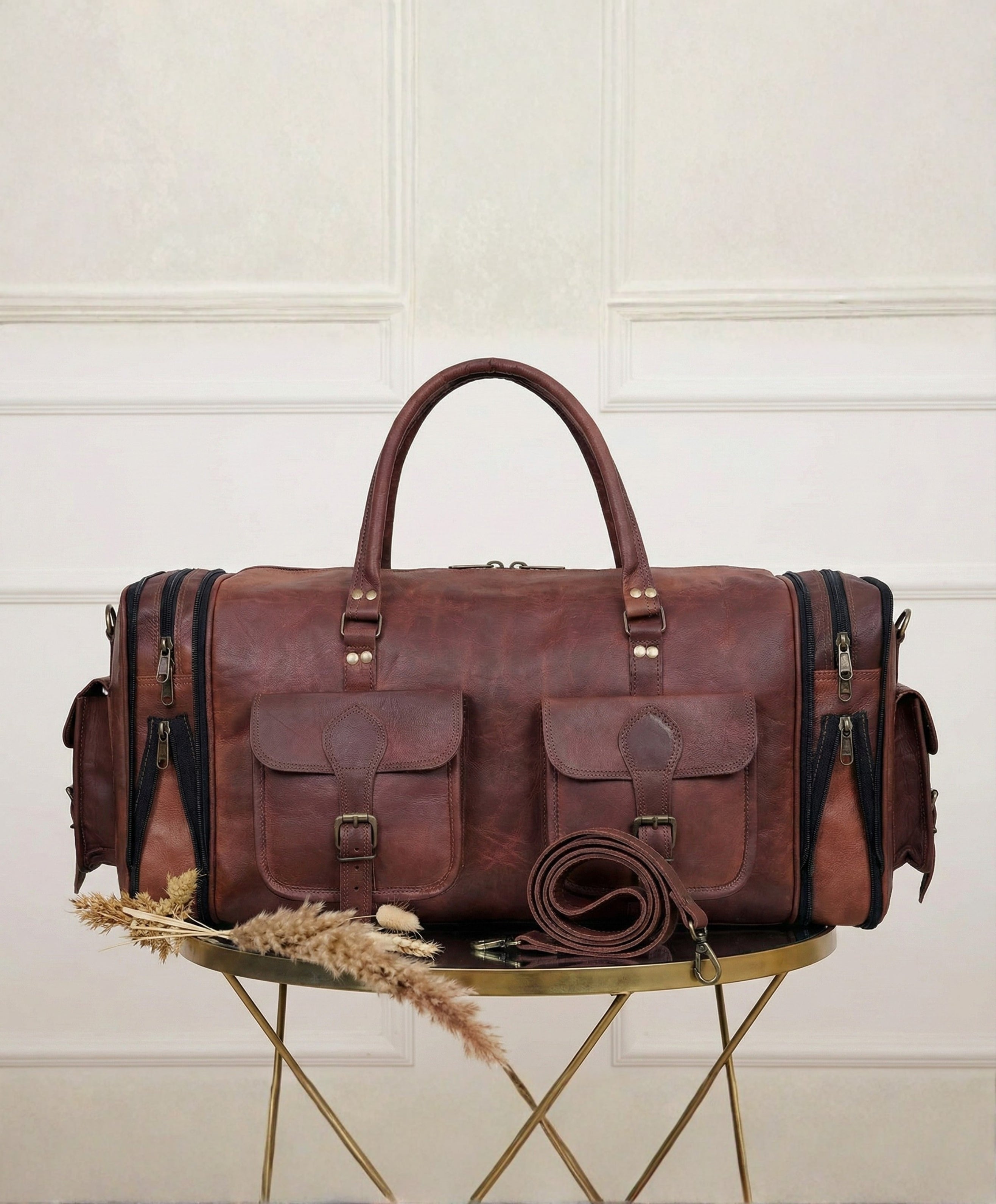Perfect as a travel bag, gym duffel bag, sports duffel bag, overnight bag, weekender bag, weekend cabin bag, or carry-on duffel, this multi-utility leather duffel blends practicality, durability, and timeless vintage style.