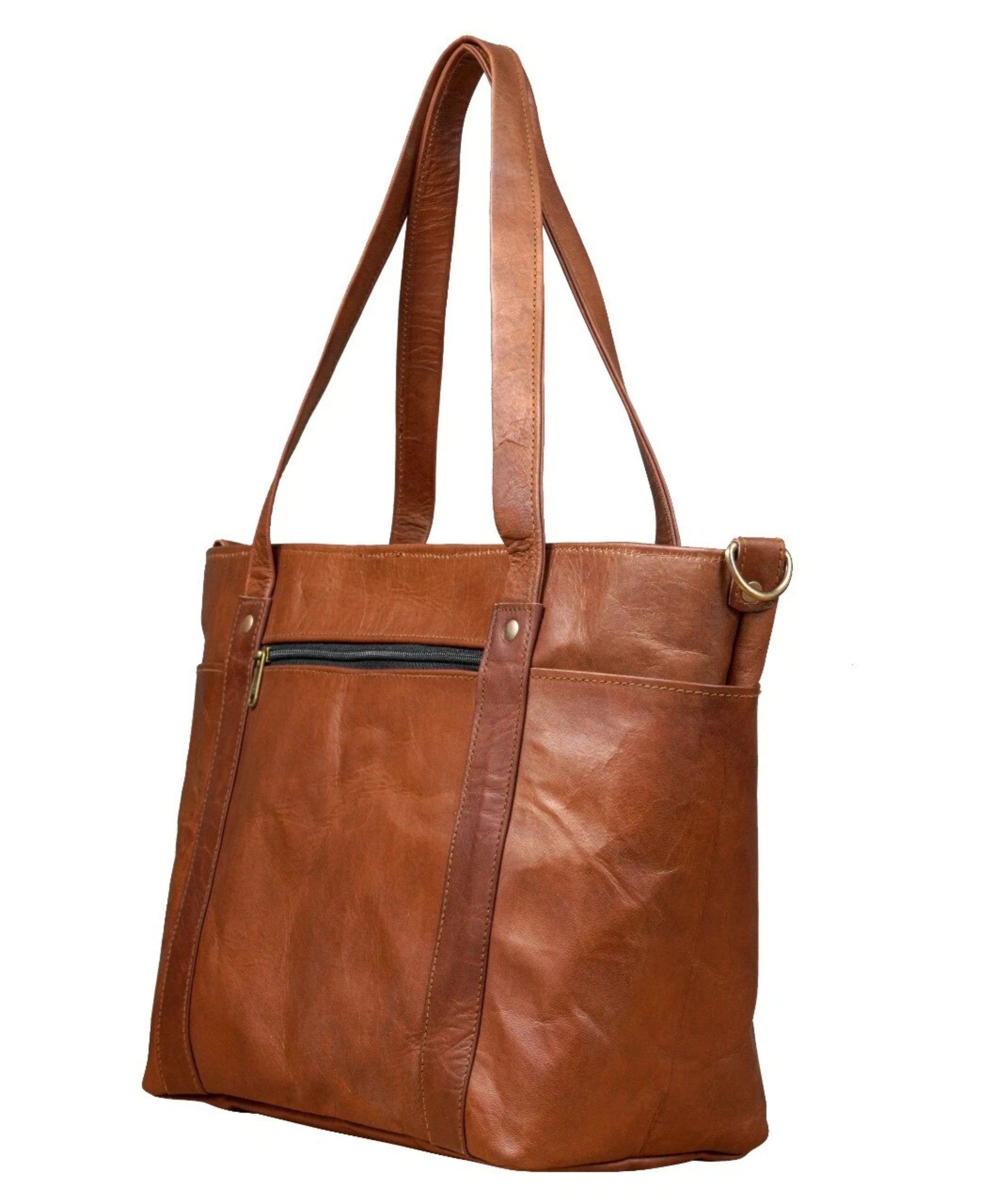 Upgrade your everyday style with the Vintage Brown Leather Women’s Tote Bag, a beautifully handcrafted accessory made from 100 percent natural goat leather by skilled artisans. Every tote is individually crafted which gives it a unique look, rich texture and a classic vintage appeal.