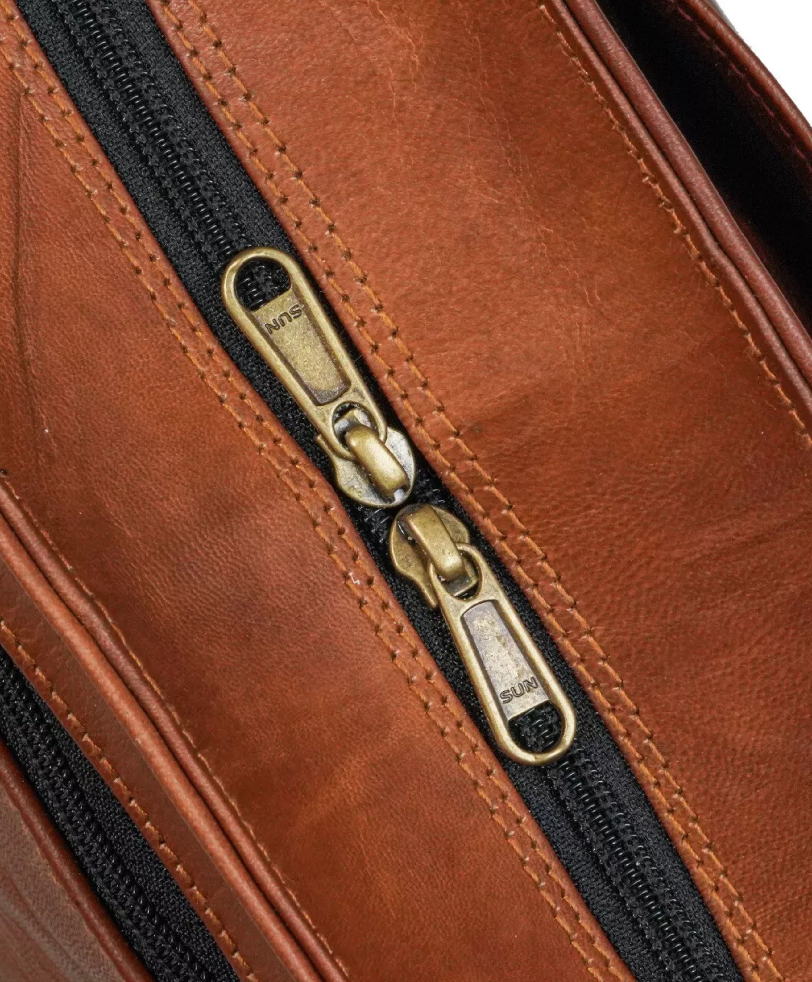 The leather is naturally tanned without any chemical treatment. Skilled makers apply a special vegetable oil finish that enhances the deep brown color, improves water resistance and helps the leather age beautifully. With use, the bag becomes softer and the color grows richer, giving you a piece that improves over time.